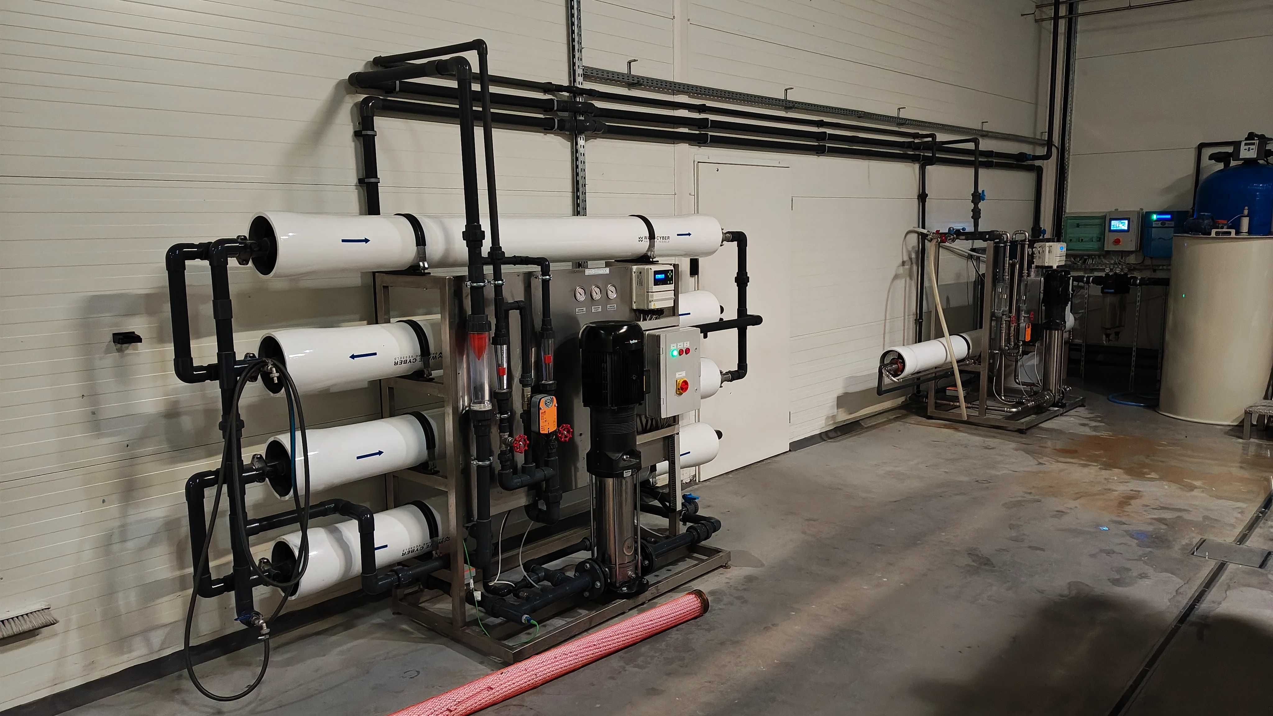 Kompletny system demineralizacji oraz zmiękczania wody na potrzeby produkcyjne zakładu z branży spożywczej. Wydajność modułów RO: ok. 16 m3/h. Wydajność systemu zmiękczania: ok. 40 m3/h.